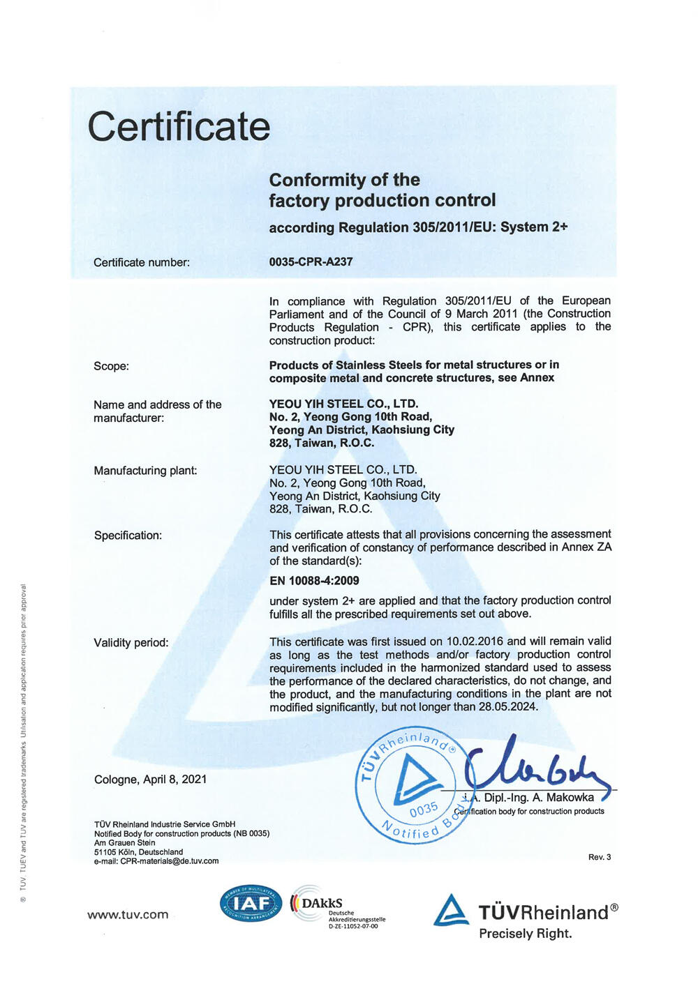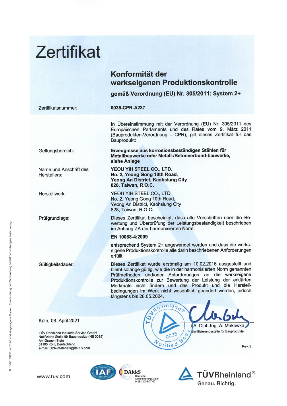 願以先進的設備、優質生產技術、超越進口貨品質和快速交貨期,達成年 產能六萬噸來滿足國內外市場之需求。
